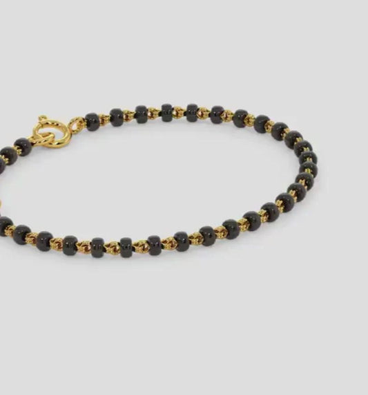 Ganpati Black Beads Bracelet With 18K Gold Polish