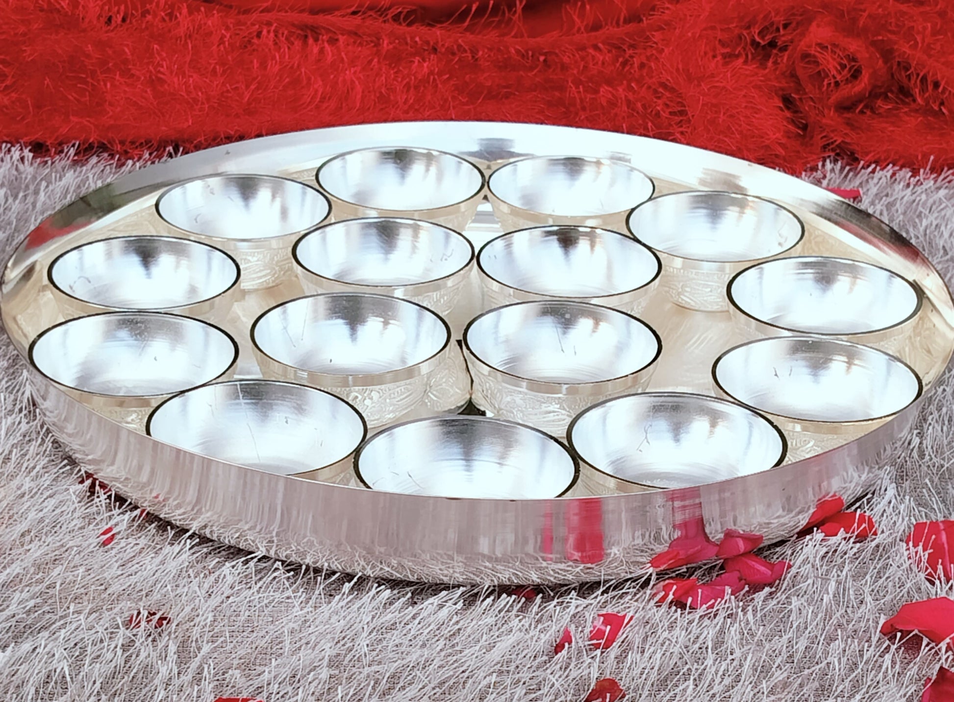 1. German silver bhog thali/ prasadam thali set with nakkashi detachable bowl