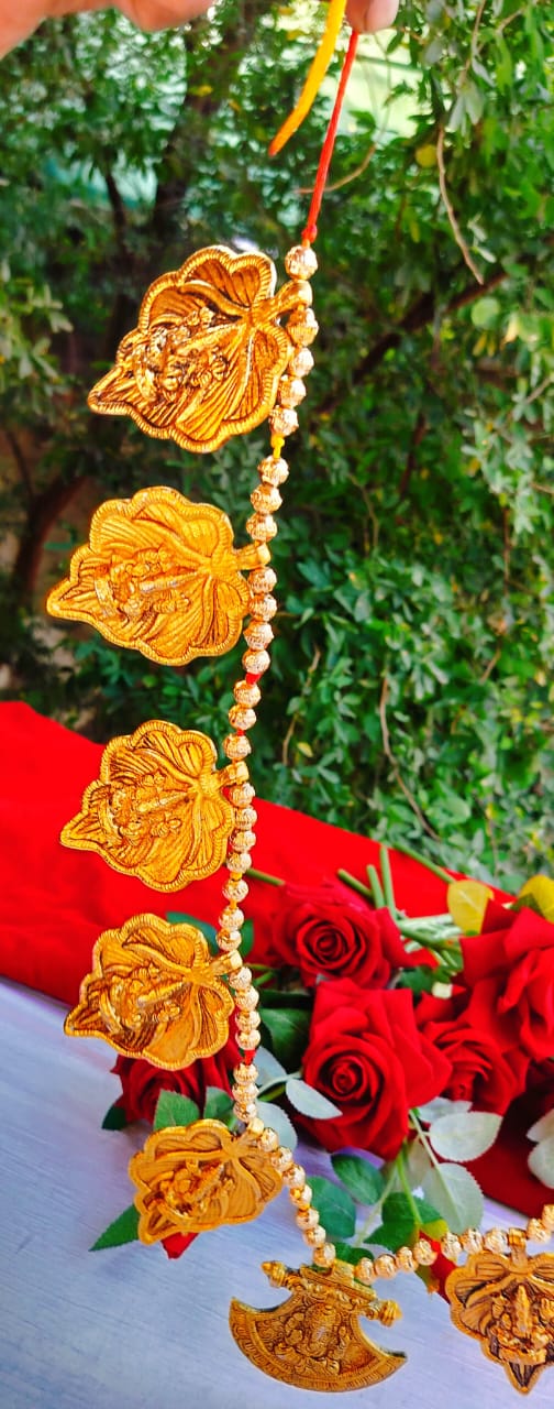Gold plated antique mango 11 ganesh embossed betel leaf π bandhanwar / toran