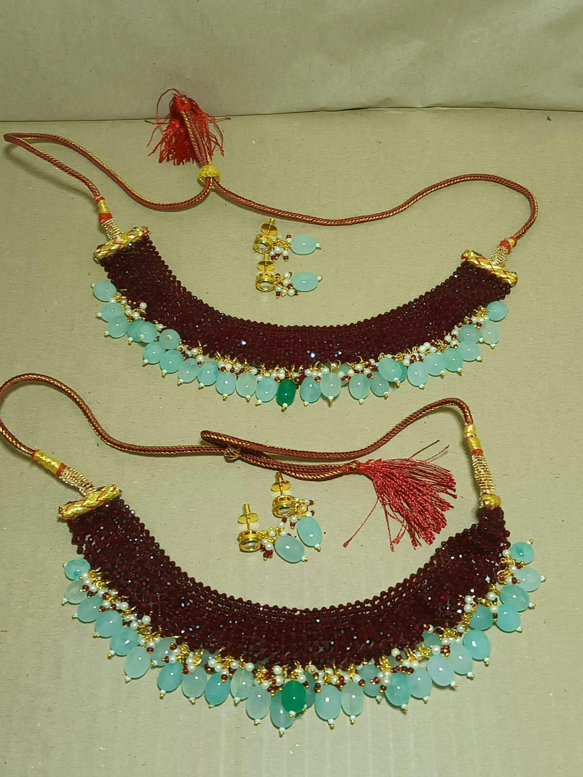 This thapa kundan/dabbi kundan Necklace set . So many different ways to style this piece as the neutral colors can go with any outfit! A truly unique find from the lands of rajasthan, this piece is carefully handcrafted from the best! This set contains natural stones, so can vary from color, size and shape.Β