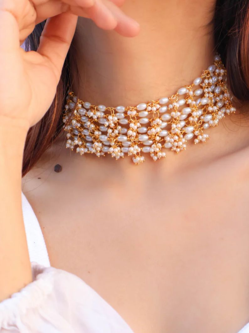 A set which gives a glance into the summer garden , Beaded sets are precious and a perfect combination for a minimal look .