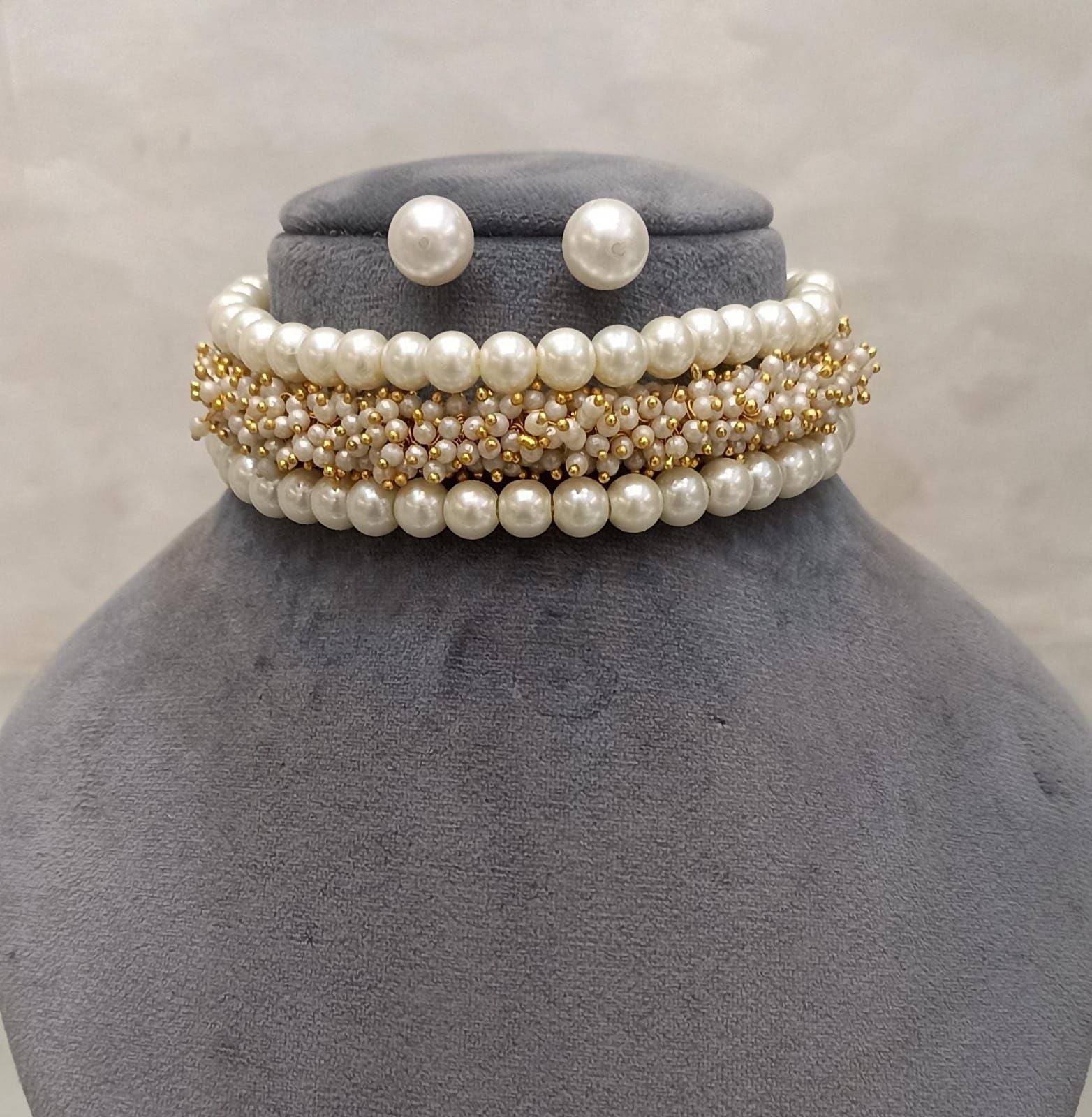 This set contains natural pearls, so can vary from color, size and shape.