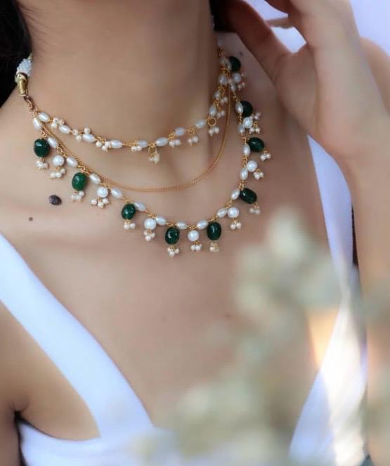 A set which gives a glance into the summer garden , Beaded sets are precious and a perfect combination for a minimal look .