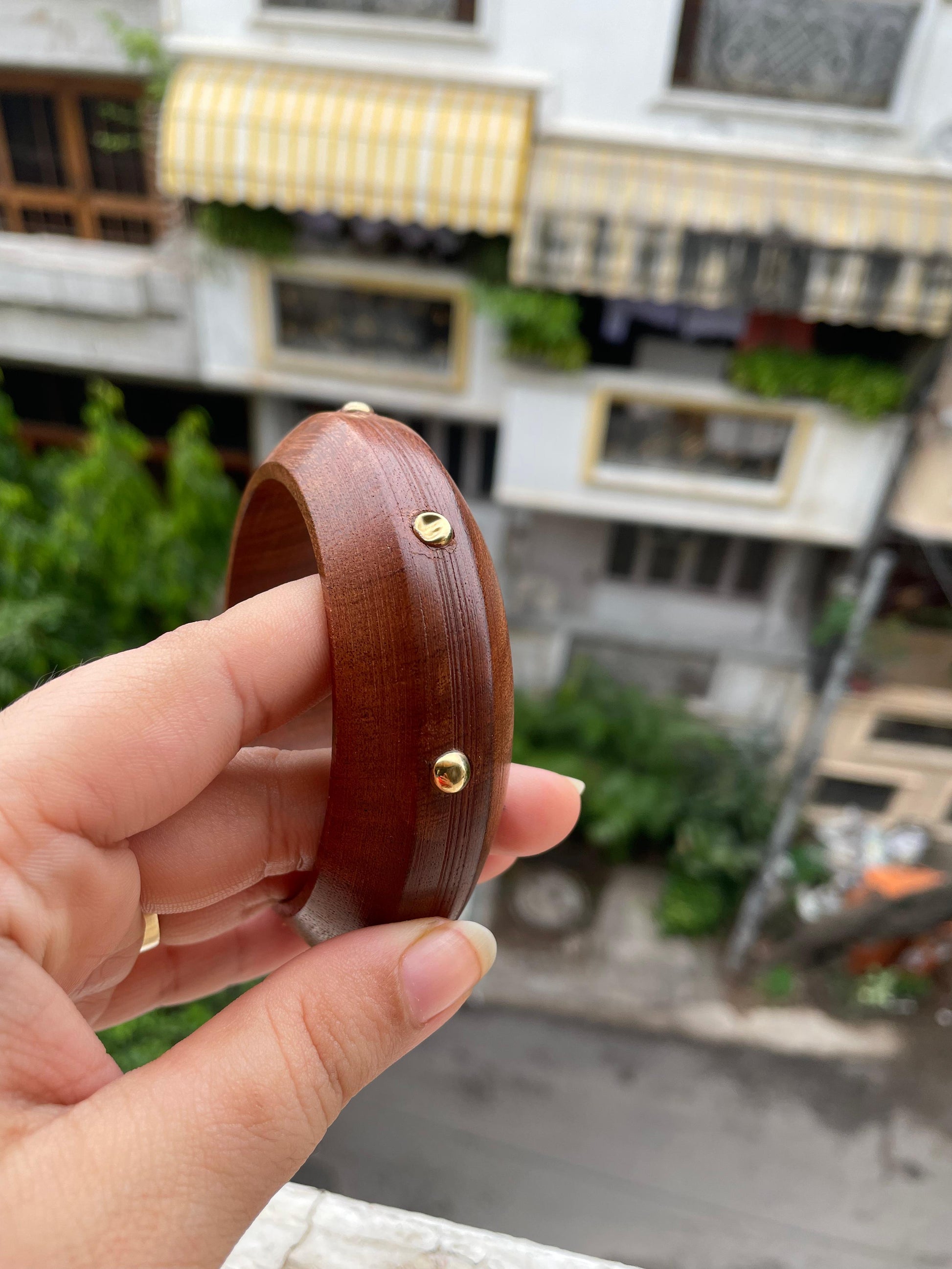 Wooden bangle with brass emboss
